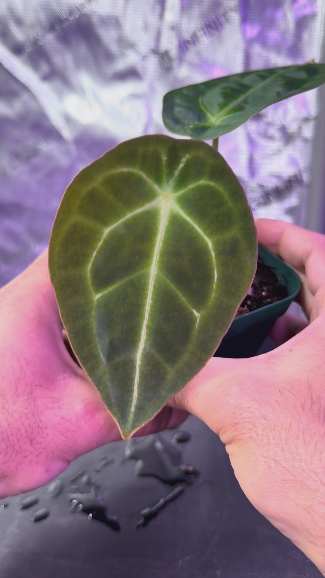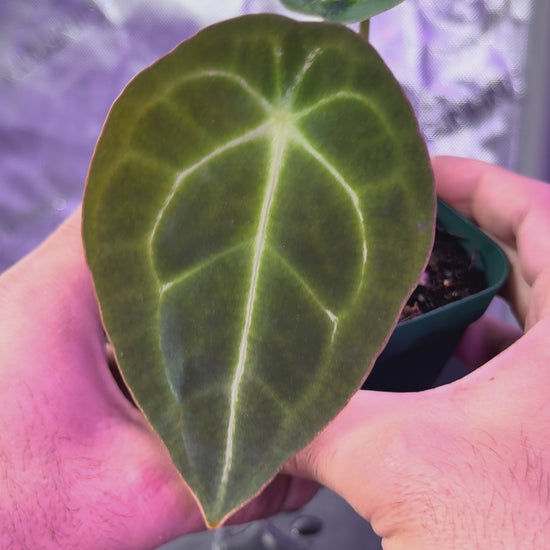 Anthurium Demon (Forgetti x Carlablackiae ‘Amanda’): Boasts a beautifully fused sinus, super prominent veins, and a deep velvety texture. Despite her dramatic appearance, she is a remarkably easy grower in our Atlanta grow tent, making her one of our most reliable and favorite breeders