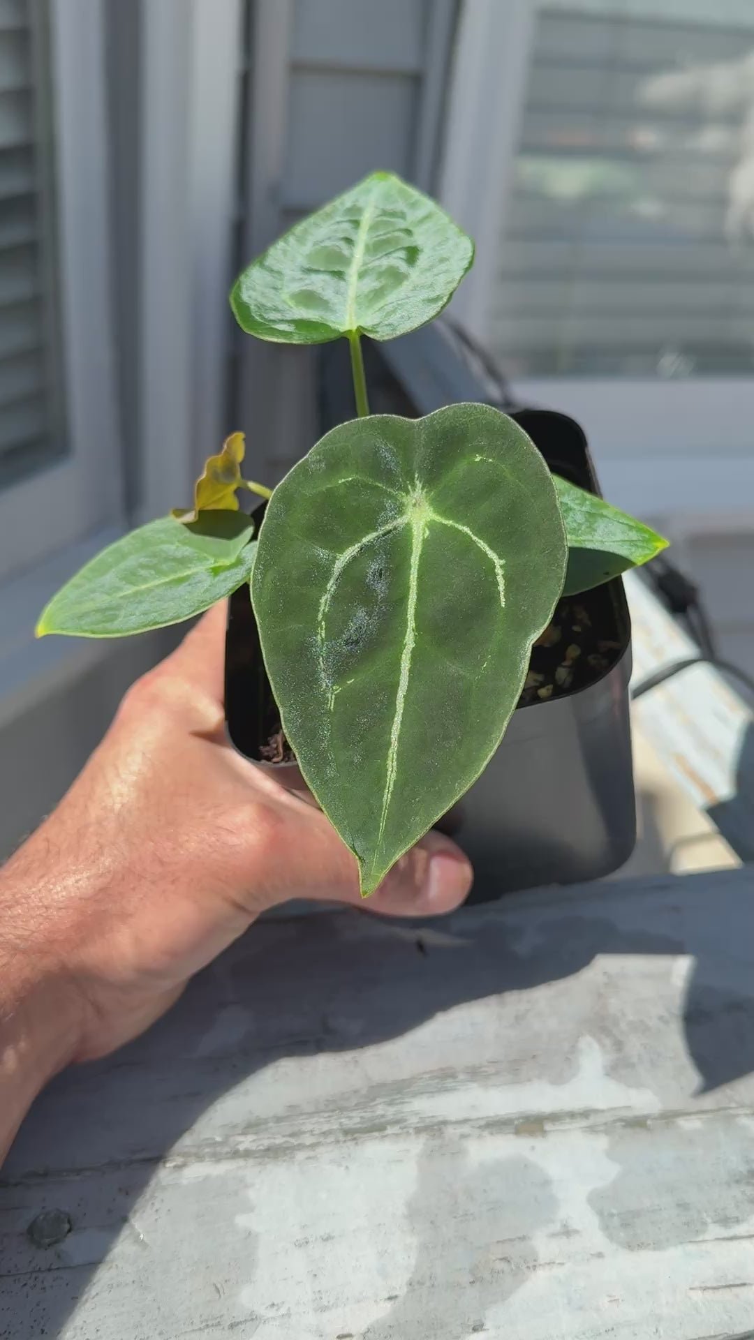 Anthurium Demon (Forgetti x Carlablackiae ‘Amanda’): This hybrid boasts a beautifully fused sinus, super prominent veins, and a deep velvety texture. Despite its dramatic appearance, it is a remarkably easy grower with robust health.